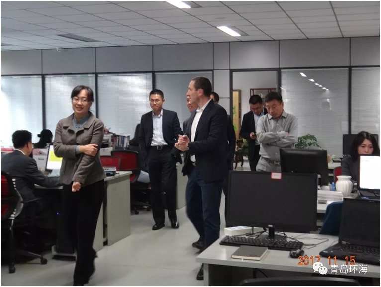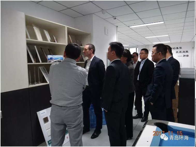 2017年11月15日,西门子中国区MC总经理 Frank Golueke、GMC中国区总经理乔为民、山东区销售总监李志刚、北方区GMC BRS经理张野及青岛区销售经理耿蕙一行共7人莅临青岛环海时代科技有限公司青岛总部办公室,就MC业务进行了深入的沟通。