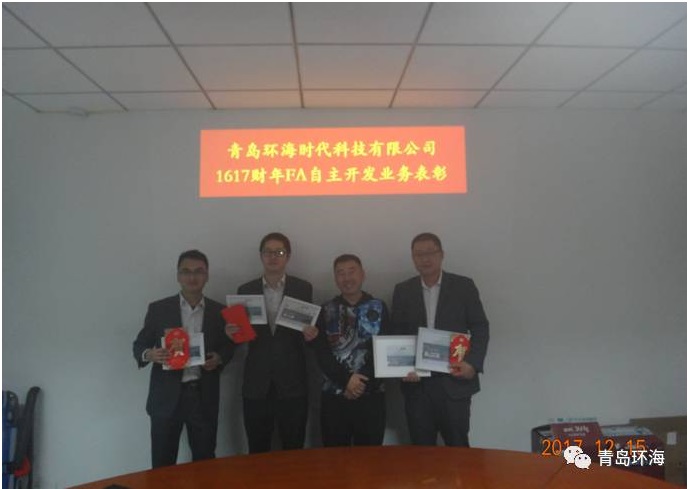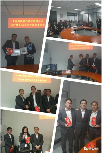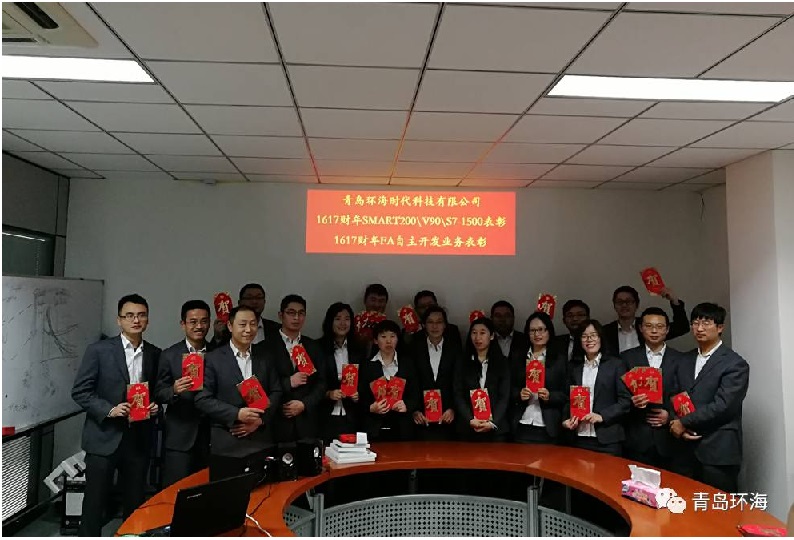 2017年12月15日,青岛环海时代科技有限公司员工欢聚在青岛总部会议室,召开1617财年产品线表彰会&FA自主业务开发表彰会。会议表彰了1617财年在SMART200/V90/S7-1500产品线销售业绩突出者,并发放了西门子FA自主开发业务奖金。