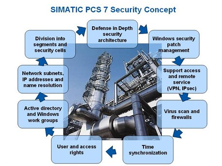 SIMATIC PCS 7 安全理念支持使用 Microsoft Internet Security 和 Acceleration Server 2006 (ISA Server 2006)、Windows 防火墙和 Scalance S 安全模块。因这些模块具有的工业功能 (IP30) 及过程信息的优化通信,其与办公设备有所不同。除防火墙之外,病毒扫描程序是最知名的安全防护措施。SIMATIC PCS 7 支持三种最常用的针对生产和控制系统的病毒扫描程序。
